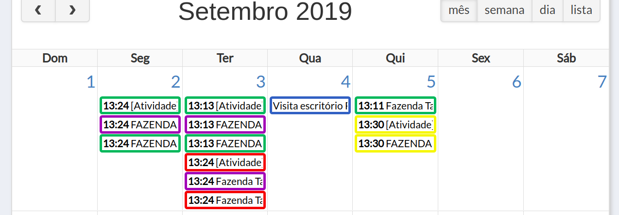 O sistema vai juntar todas as atividades, comentários e estágios de um contato em um dia em apenas um item no calendário, mostrando sempre a última atividade, comentário ou estágio realizada no dia.
